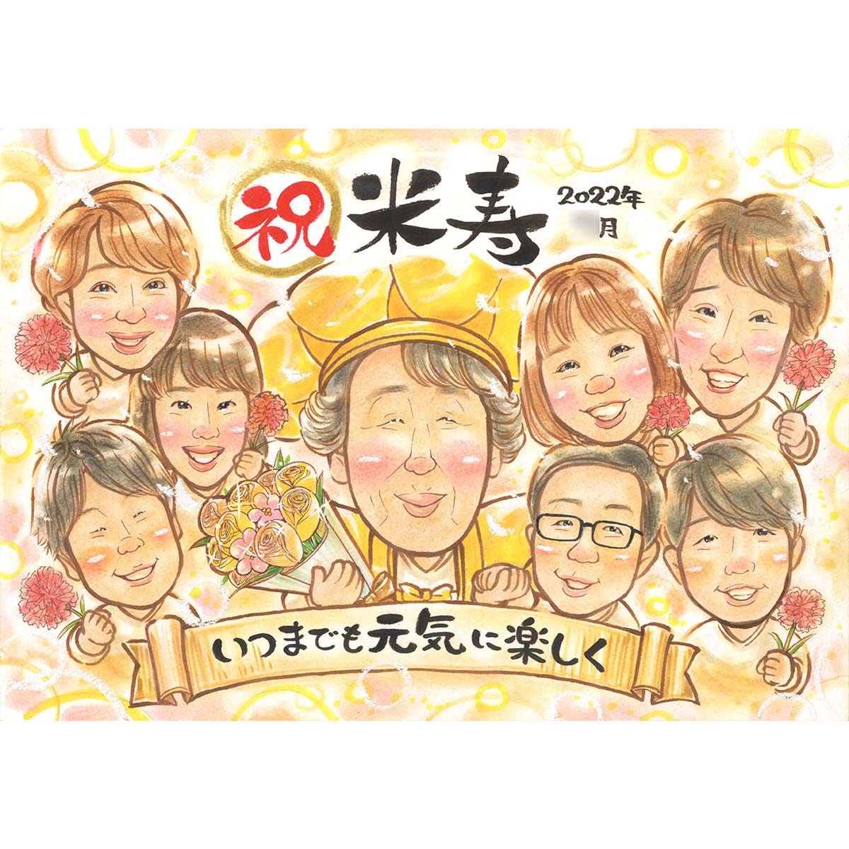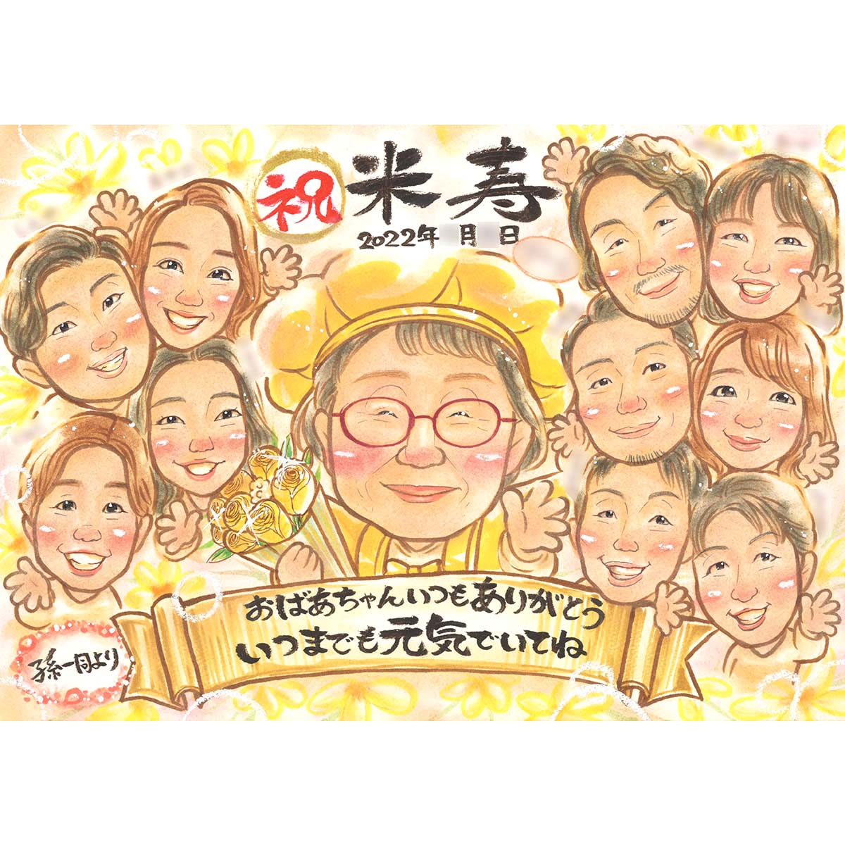 家族の絆を深める米寿祝い 米寿88歳、還暦、古希、喜寿、傘寿、卒寿、白寿、百寿など、長寿のお祝いにぴったりの手書き似顔絵イラストが...