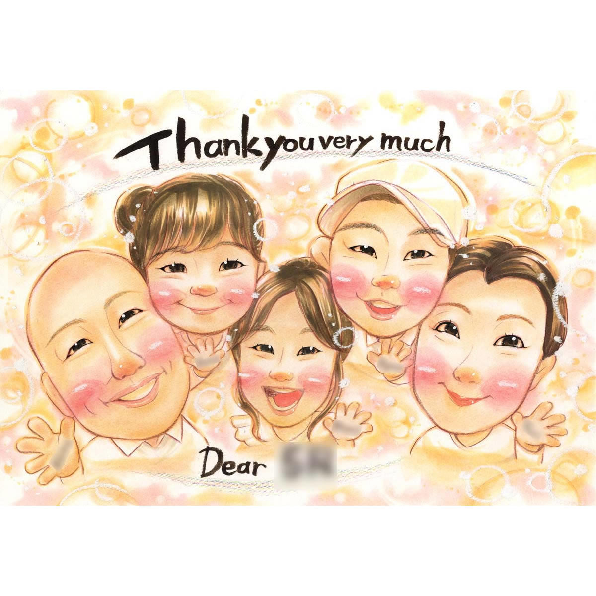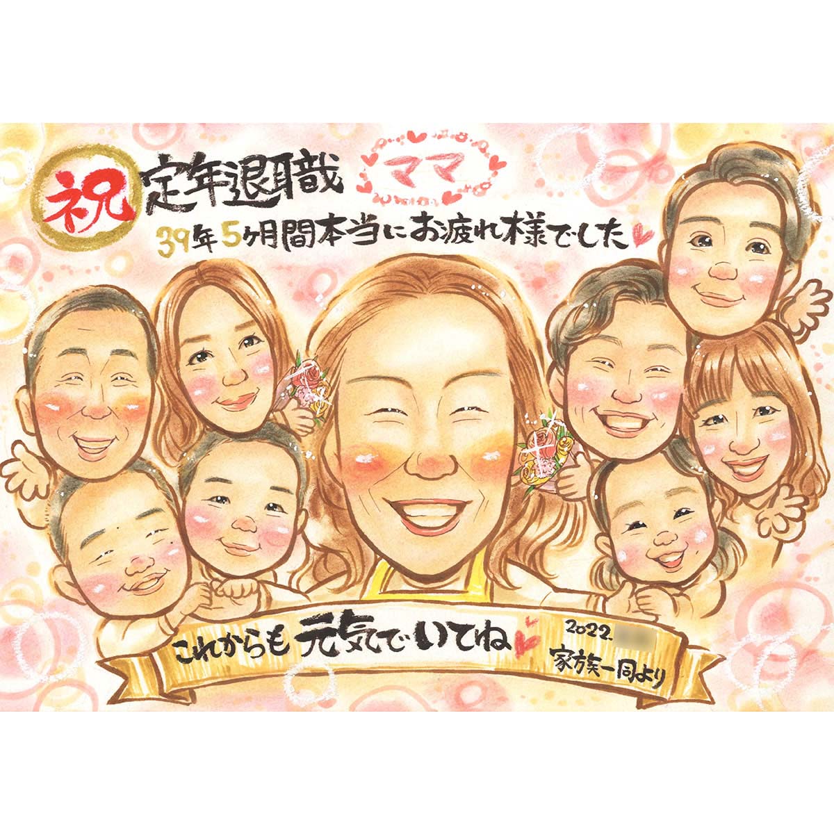 ほんわか家族囲んで笑顔似顔絵 贈る人も贈られる人も幸せになる、退職祝いや記念日に最適なアイテム ママ、パパ、祖父母、上司、恩師、同...