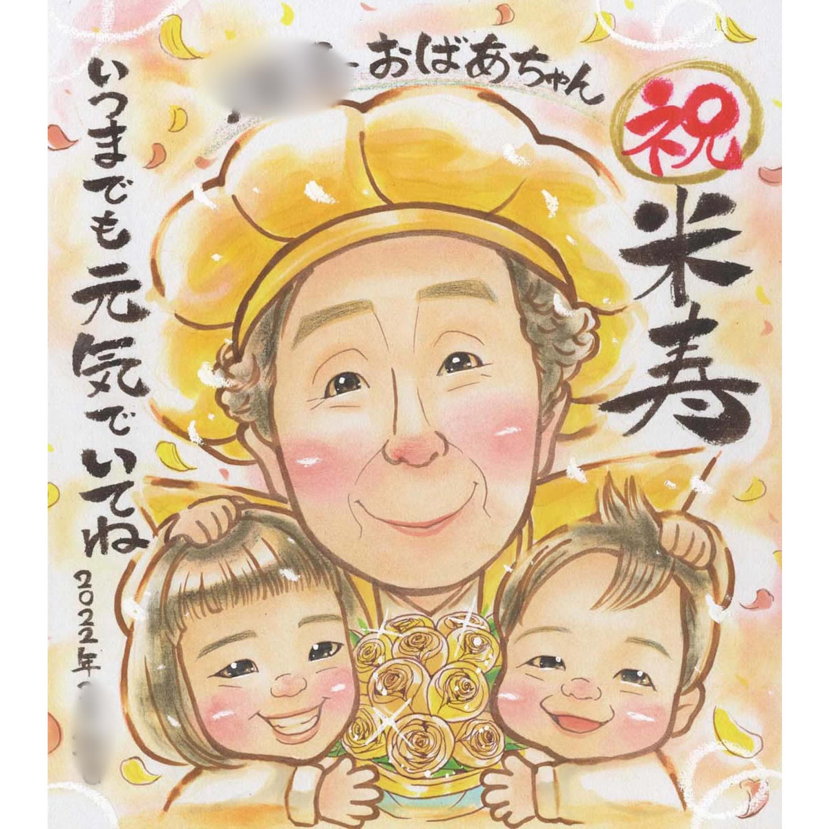 思い出の米寿 祖父・祖母から両親まで喜ばれるタッチの似顔絵ギフト 感謝を込めての米寿ギフト 家族からの贈り物で、想いを伝えるお祝い...