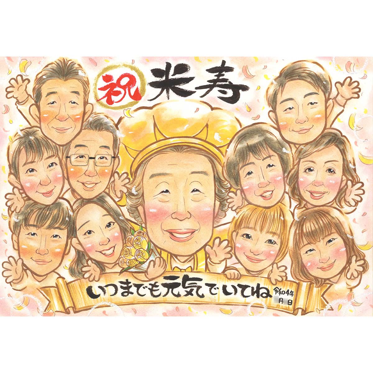 米寿の涙腺崩壊似顔絵ギフト 家族から贈る感謝の気持ちがたくさん詰まった、米寿のお祝いにぴったりの似顔絵ギフトです 感動の一枚!家族...