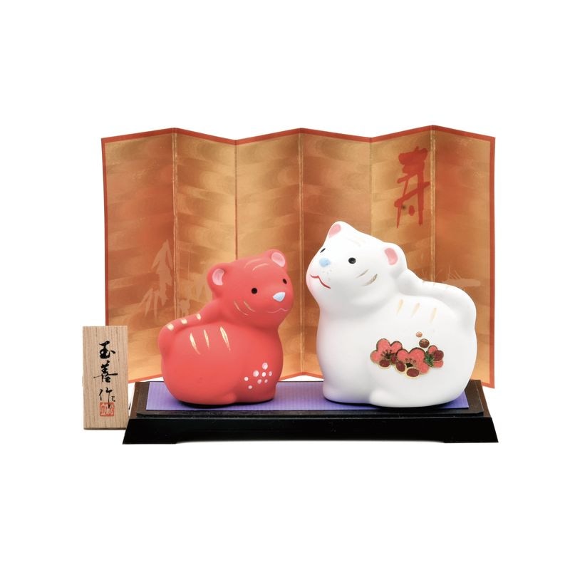 置物 虎 紅白飾り (台座寸法 6.5×15cm) 紙箱