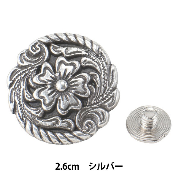 ボタン 『花唐草 メタルコンチョ 丸 シルバー 幅約2.6cm 70024』 KYOSHIN-ELLE 協進エル