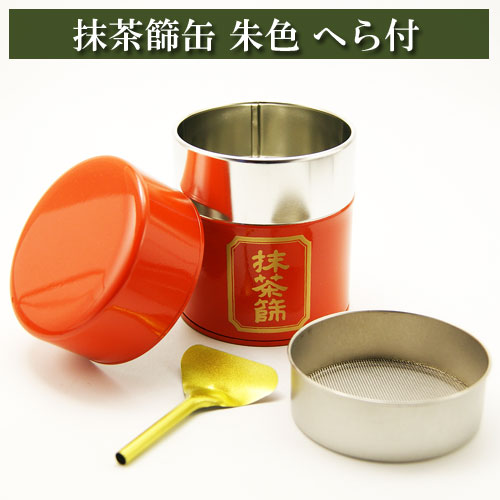 抹茶篩缶 朱色 へら付 茶道具 茶の湯用品 抹茶お点前用