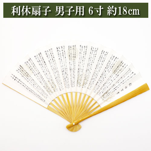 利休扇子 男子用 白竹 6寸 約18cm 利休百首 茶道具 茶器 茶の湯道具 抹茶 お点前 水屋 お稽古