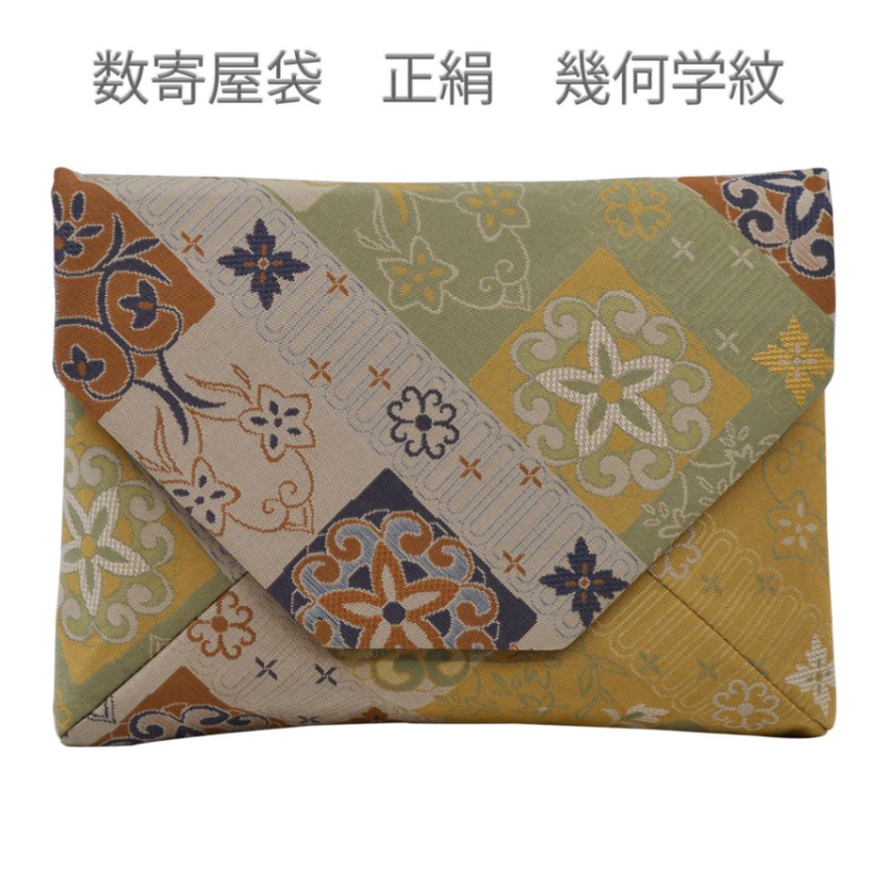 数寄屋袋 便利なチャック付き 紗 菊に観世水 草色