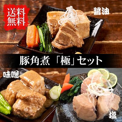 豚角煮「極」セット 醤油1本・味噌1本・塩1本