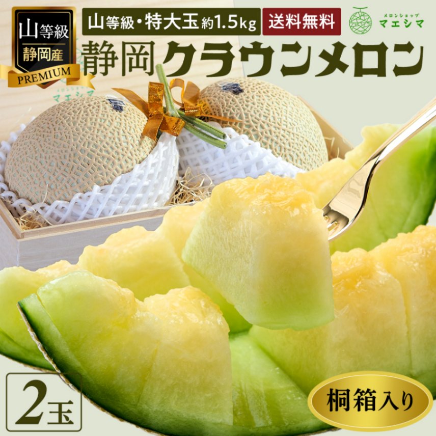 桐箱入りクラウンメロン【上(山等級)】特大玉(1.5kg前後)2玉入り