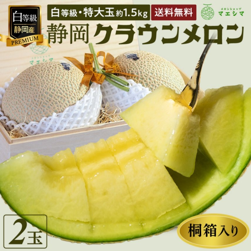 桐箱入りクラウンメロン【並(白等級)】特大玉(1.5kg前後)2玉入り