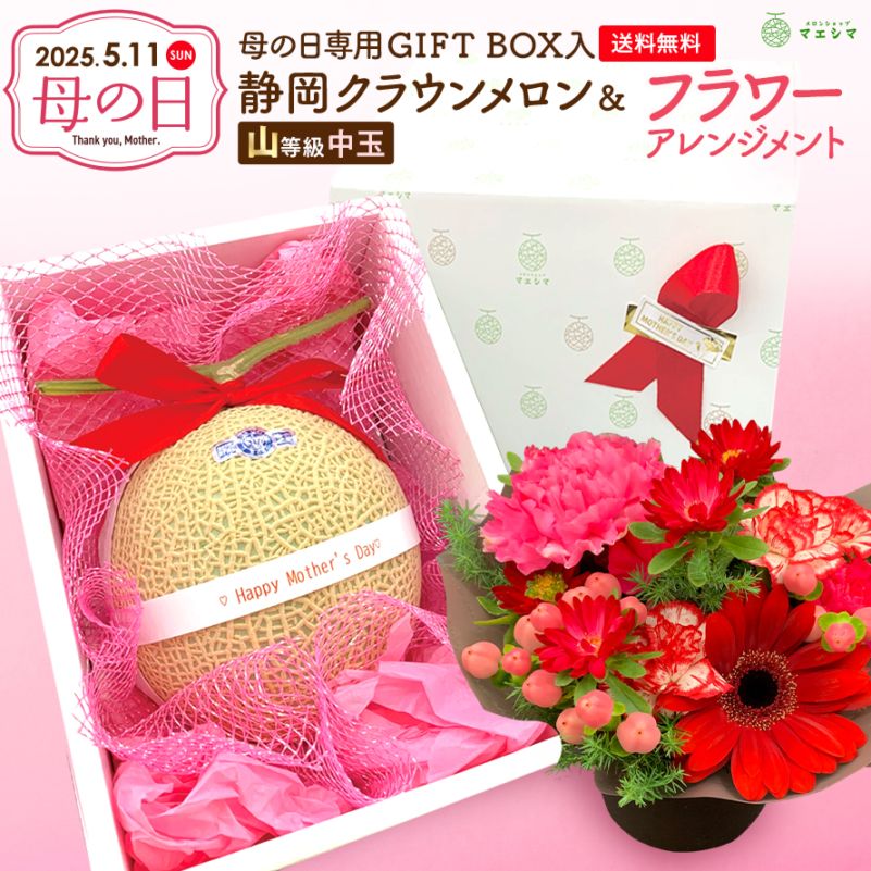 母の日ギフトボックス クラウンメロン【上(山等級)】中玉1玉入り+お花のセット