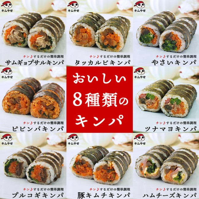 キンパ8種セット(プルコギ・豚キムチ・ツナマヨ・ハムチーズ・野菜・ピビンパ・タッカルビ・サムギョプサル) 冷凍のままレンジでチンの...