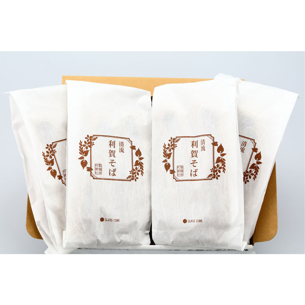 グラスキューブ「清流利賀そば4袋入り 簡易包装セット」