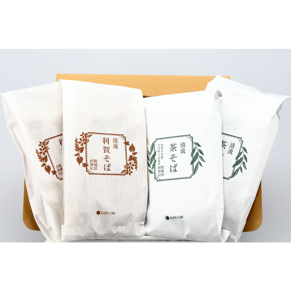 グラスキューブ「清流利賀そば2袋、清流茶そば2袋入り 簡易包装セット」
