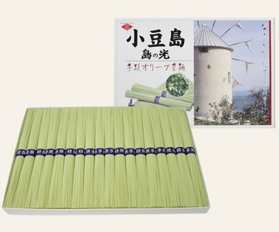 小豆島手延素麺協同組合:見た目に鮮やかで、いい喉ごしです!!「島の光 オリーブ素麺 0.9kg 紙箱」