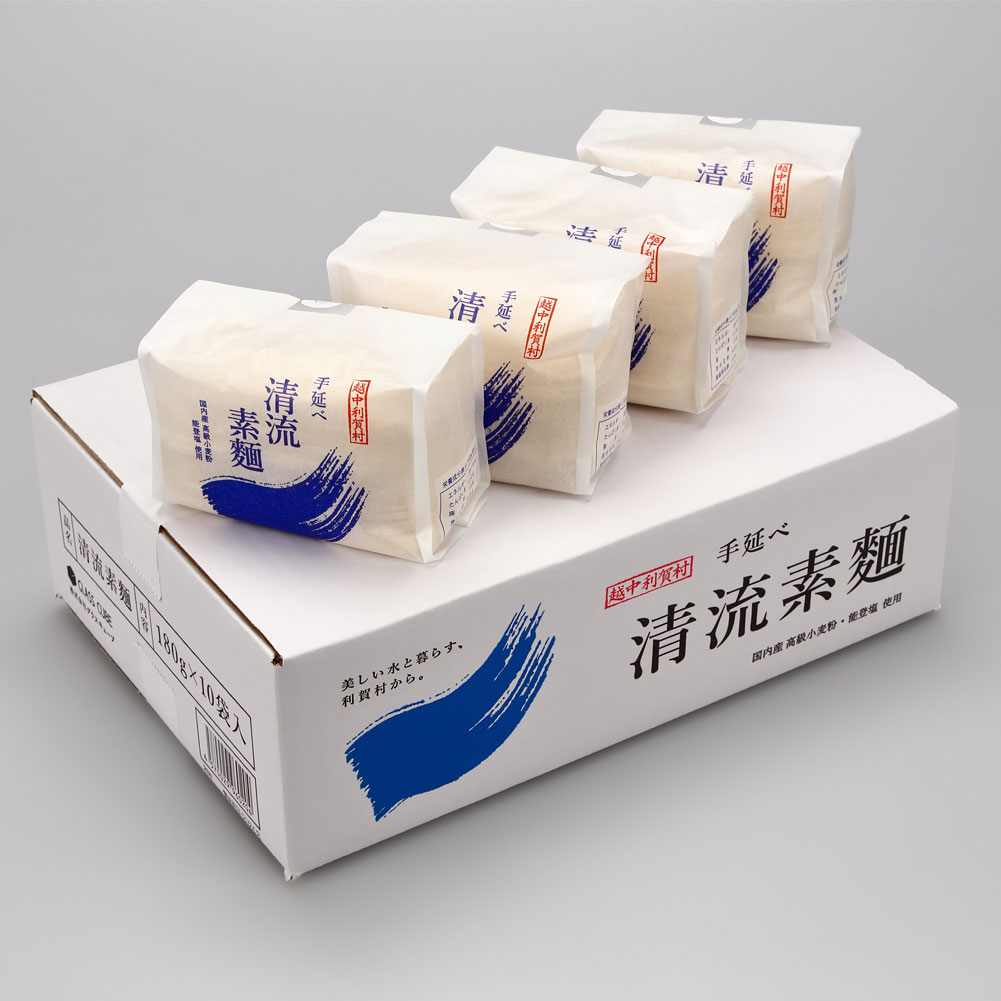 グラスキューブ「国産小麦 能登塩使用 手延べ清流うどん10袋入り 段ボール箱」