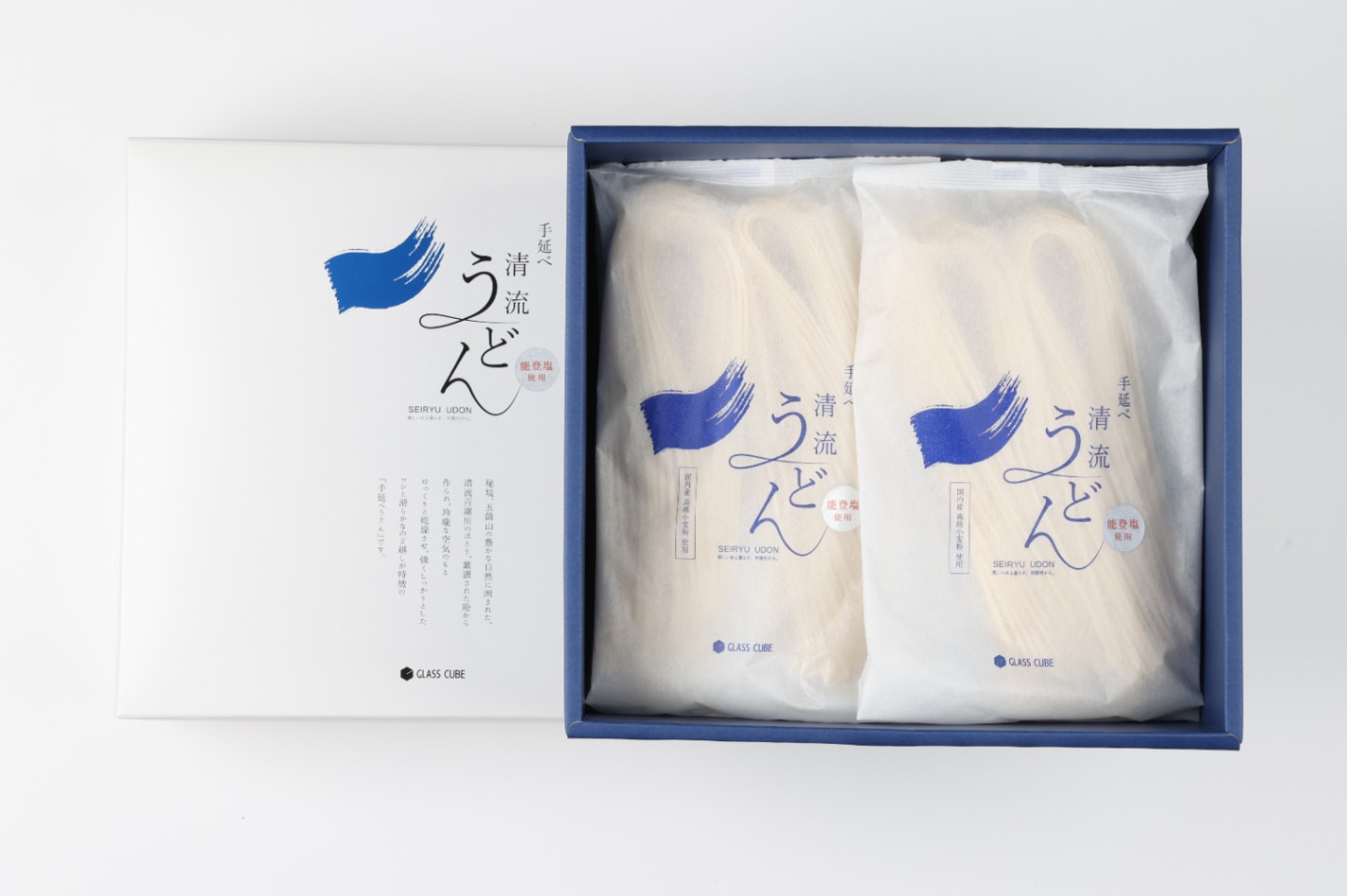 グラスキューブ「国産小麦 能登塩使用 手延べ清流うどん4袋入りギフトセット」