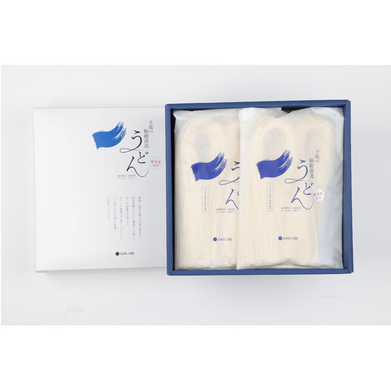 グラスキューブ「国産小麦 能登塩使用 手延べ極細清流うどん 4袋入りギフトセット」