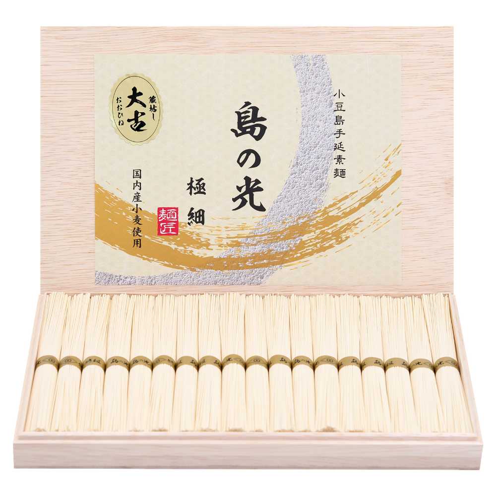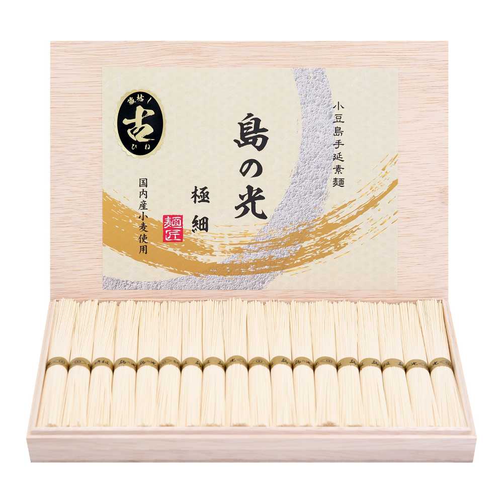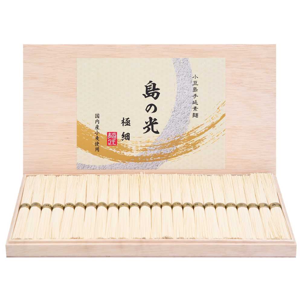 小豆島手延素麺 島の光 極細麺 最高級品金帯 豪華桐箱入り 1.5kg(50g×30束) 贈答 進物 ギフトセット 送料無料