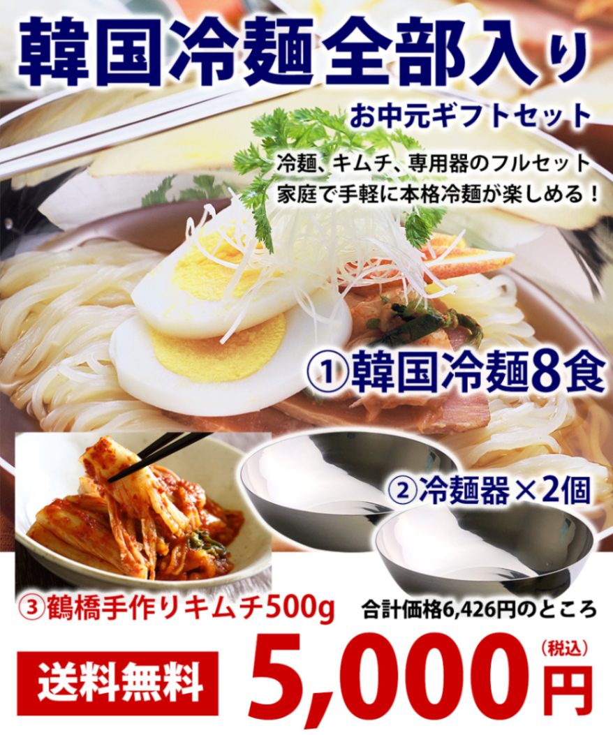 ゴクうま韓国冷麺8食と白菜キムチ500g、冷麺専用器2個セット クール冷蔵便 【送料無料】