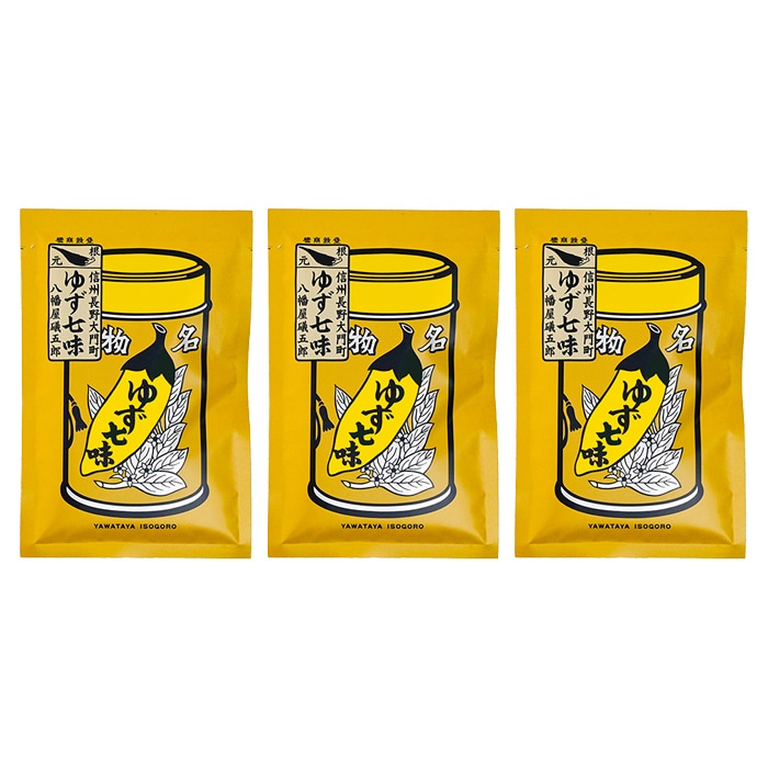 八幡屋礒五郎七味唐辛子袋入(ゆず入り)×3個(信州長野県善光寺のお土産七味唐がらし)