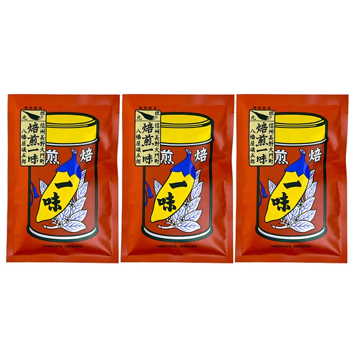 八幡屋礒五郎焙煎一味唐辛子 袋入×3個(信州長野県善光寺のお土産唐がらし)