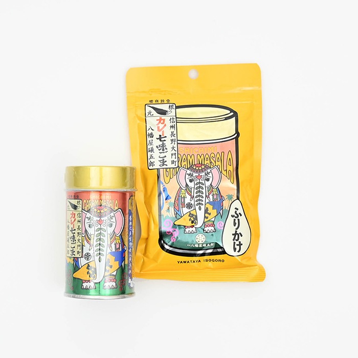 八幡屋礒五郎カレー七味ごま1缶+1袋 信州長野大門町 ふりかけ(信州長野県善光寺のお土産七味唐がらし)