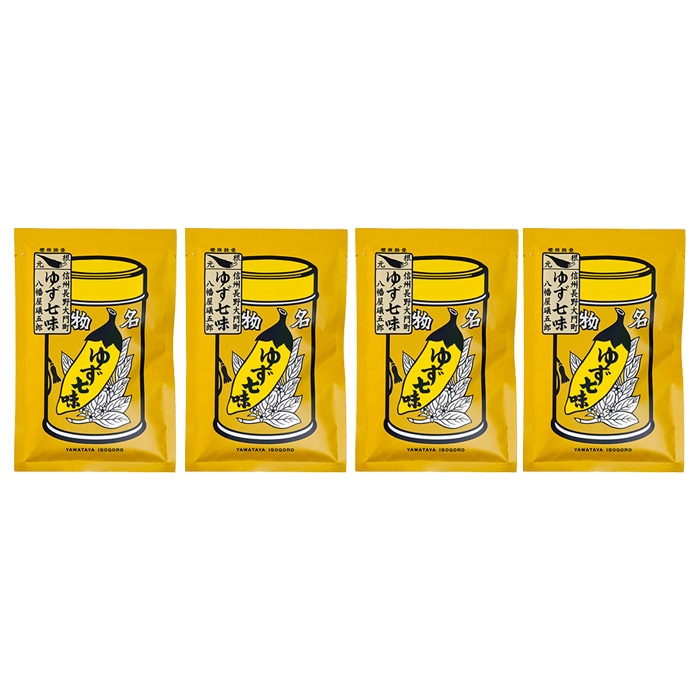 八幡屋礒五郎七味唐辛子袋入(ゆず入り)×4個(信州長野県善光寺のお土産七味唐がらし)