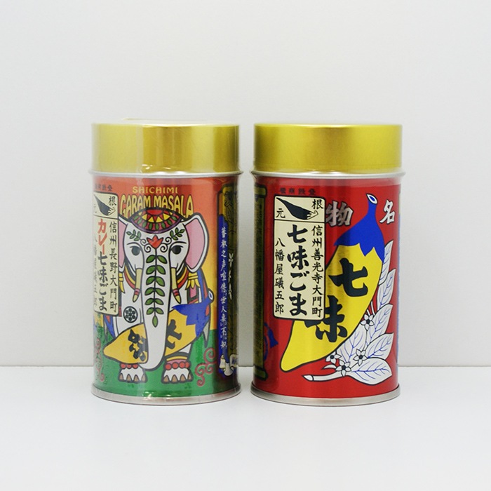 八幡屋礒五郎七味ごま缶+カレー七味ごま缶の2種セット