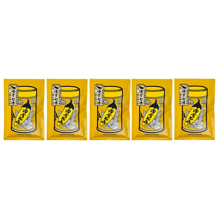 八幡屋礒五郎七味唐辛子袋入(ゆず入り)×5個(信州長野県善光寺のお土産七味唐がらし)
