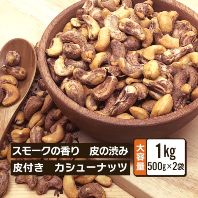 燻製カシューナッツ 皮付き 業務用 500g 2袋セット 合計1kg 大容量 スモークカシューナッツ
